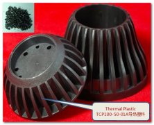 最近国际上研发出了多种导热塑料,其材料大多为以工程塑料和通用塑料为基材,如PP、ABS、PC、PA、LCP、PPS等。然后在塑料中填充某些金属氧化物粉末、碳、纤维或陶瓷粉末而成。例如将聚苯硫醚(PPS)与大颗粒氧化镁(40~325目)相混合就可以制成一种绝缘形的导热塑料。其典型的热传导率范围为1-20 W/m-K,某些品级可以达到 100 W/m-K。这一数值大约是传统塑料的5-100倍,一般塑料的热传导率只有0.2 W/m-K。不过如果为了得到高导热率而添加过多的金属粉末,就会变成具有导电性。以致无法在某些场合应用.比如:TCP100-50-06A(PA ): 传热标准值 10w/mk 热传导导电应用软件:护壳和光辐射器 ,TCP100-50-06A (PA): 传热常数 10w/mk 导热性绝缘带APP:板子/基带芯片 ,TCP100-30-06A (PA): 传热性标准值 3W/mk 导电耐压app:界面显示,TCP100-25-06A (PA): 传热性指数公式 2.5w/mk 导热性导电应该用:风扇cpu散热器。导热塑料前景广阔,不仅解决了环境污染的问题,也节约了能源的消耗,导热塑料LED球泡灯成本性高于原生塑料等等,都成了导热塑料发展路上的问题。