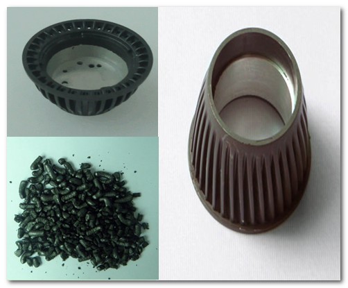 塑料导热材料可以一次成型,无需后加工,容易实现大规模批量化生产,实现规模效益。有效的减少了铝材料在挤出成型后的去毛边、镀镍等后道工序。同时,模具的耗损较铝合金等材料生产小,寿命长,减少了加工周期和成本。
