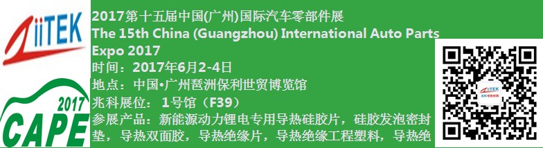 更多相关在新能源纯电动汽车散热设计的信息,请您参加全球汽车零部件一站式采购平台-2017第十五届中国(广州)国际汽车零部件展览会,以下是我司在此展会的位置:1号馆(F39),我们参展的主要产品有新能源动力锂电专用热传导硅胶制品片,透明硅胶泡棉封好垫,热传导隔绝片,导电双层胶,传热性项目 塑料材质等,盼望着您的亲临~