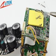 传热相变幻材料的关键性能是相变的特性,上面以及特别详细的做了介绍;在室温下材料是固体,作为片状的垫片便于处理,用于散热器或器件的表面。当达到器件的工作温度时,相变化材料变软,加一点加紧力,材料就像热滑脂一样很容易就两个配合表面整合了。这种完全填充界面气隙和器件与散热片间隙的能力,使得相变垫优于非流动弹性体或石墨基热垫,并且获得类似于热滑脂的性能。