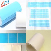 有另一种方法是采用有很强黏结性而又导热的双面胶。这种导热双面胶是使用丙烯系列材料制造出来带有粘性的热传导片,它是属于有粘性和低热抵抗的散热材料。而且具备热传导性和柔软性,可以紧贴零件上的凹凸部位,从而防止了气隙的存在。导热双面胶的导热系数通常在0.8-1.6W之间。它的抗拉强度1.2kg/cm2,足以黏结铝基板和铝散热器,耐压可达4KV/mm。
