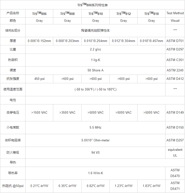 既然用在电源上,绝缘性也是必须要保证的。有些制造商把击穿电压标得很高,让客户以为绝缘性非常好,但是他们没有说明测试状况,以什么样的厚度作为测试标准。通常用在电源上的导热绝缘材料厚度在0.2mm-0.25mm,击穿电压要求不低于3.0kV。