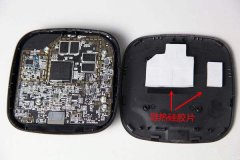 由于与底壳相连的是无线充的电路板,所有的元器件都集中在这块PCB的一面,电路板都是不规则的整体,所以与底壳之间没有办法直接无缝连接,所以在底壳上贴上导热硅胶片和导电泡棉来填充底壳与电路板之间的间隙,使电路板的热量通过导热硅胶片和导电泡棉的导向底壳来使之散热,也可起到电磁屏障的作用。