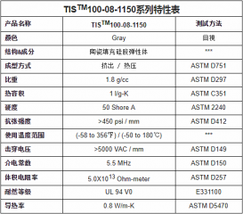 TIS导热绝缘硅胶挤出材料是一款专门为动力汽车电池包开发的导热、阻燃、绝缘衬垫,我们先来看它的产品性能表: