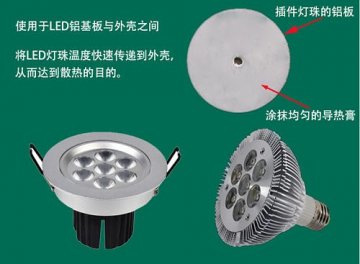 在LED汽车前大灯近光单元设计中,3颗大功率LED陈列在铝基板上,这种紧密排列的大功率LED热量的高度集中和散热难度可想而知。试验样件的做法是铝基板与散热器紧密贴合固定,二者之间填充了性价比较高且使用简单的导热硅脂,在整个散热系统中,导热硅脂其实是散热的关键所在!